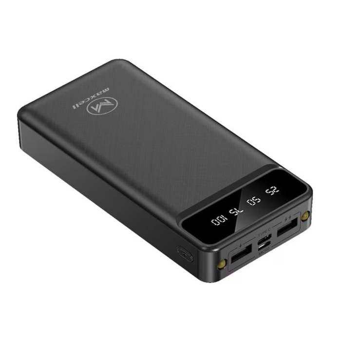 Baterie externa, Power bank cu display LED si lanterna 30000 mAh, Maxcell, Negru
