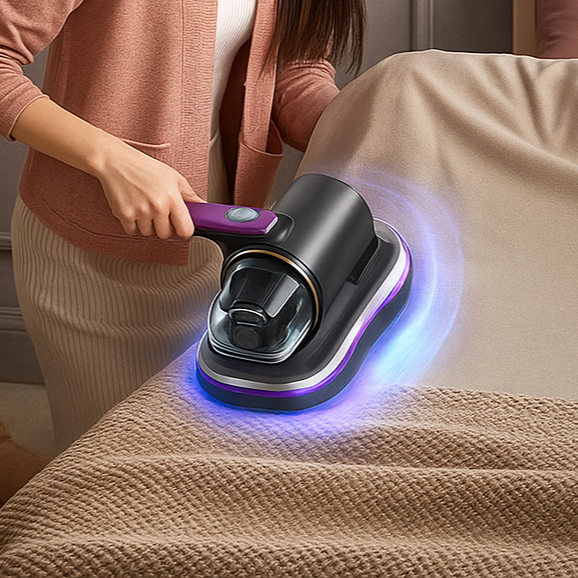 Aspirator portabil wireless pentru indepartarea acarienilor, sterilizare si aspirare, dispozitiv multifunctional de curatare, raze UV, fara fir, ideal pentru curatarea paturilor, perdelelor, par de animale, mov-gri