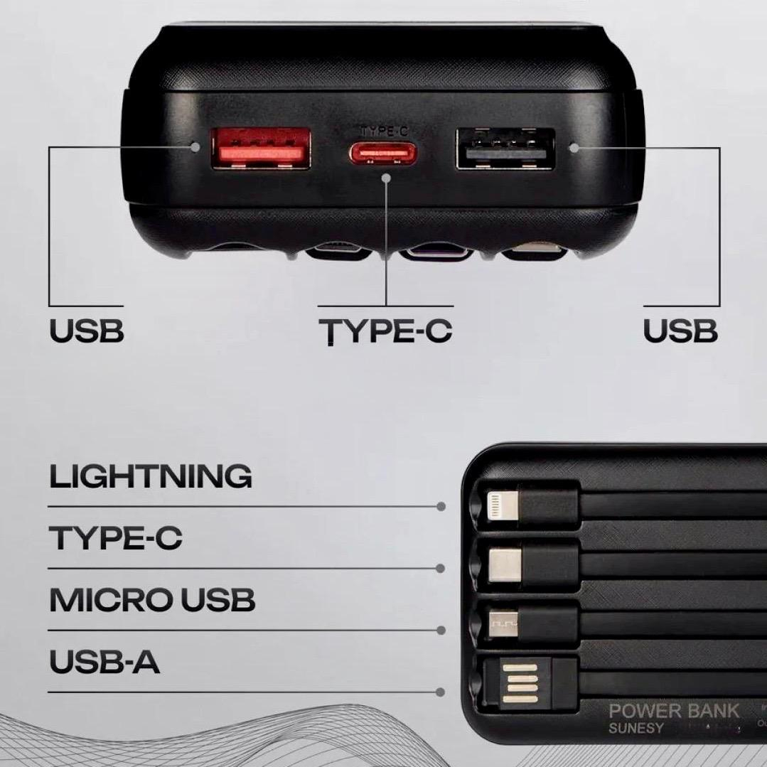 Echipat cu porturi USB-A si USB-C, precum si Micro/ Mini USB, acest power bank permite alimentarea simultana a mai multor dispozitive. Flexibilitate totala, indiferent de tipul de conector.